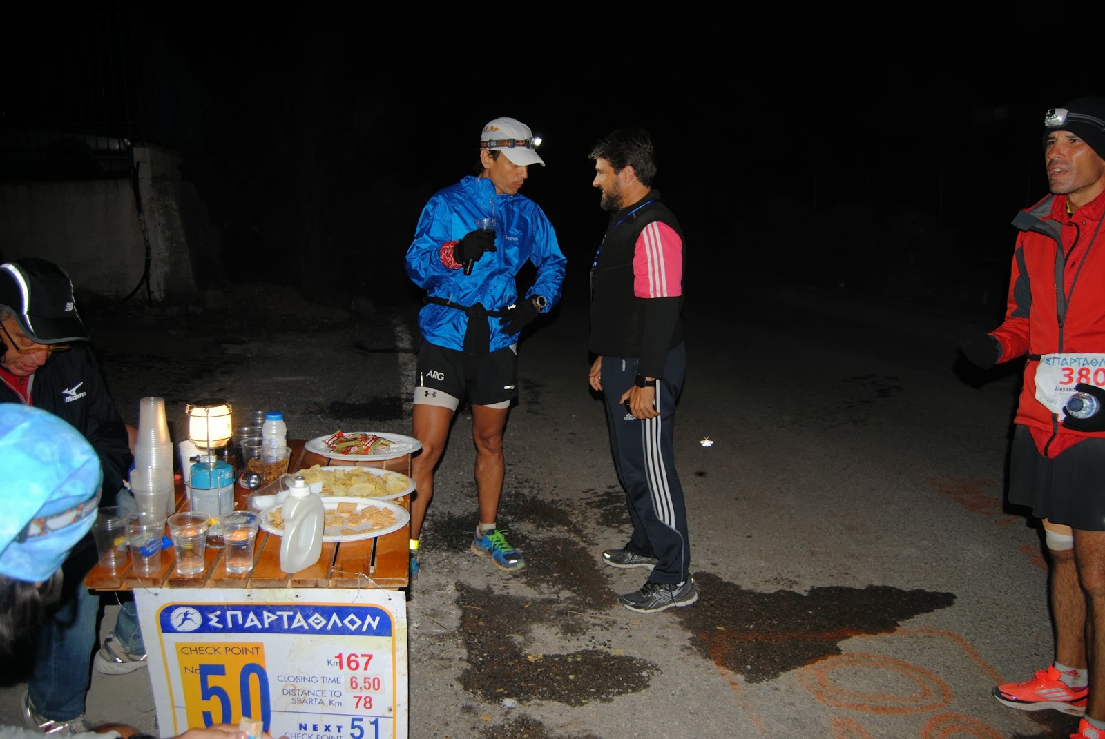 10 kilómetros y 3 puestos de control después ya era de noche. Nuestro equipo podía asistirnos nuevamente. Tocaba abrigarse, meternos calorías y ponernos el frontal, que sería el gran compañero de las siguientes 12 horas.