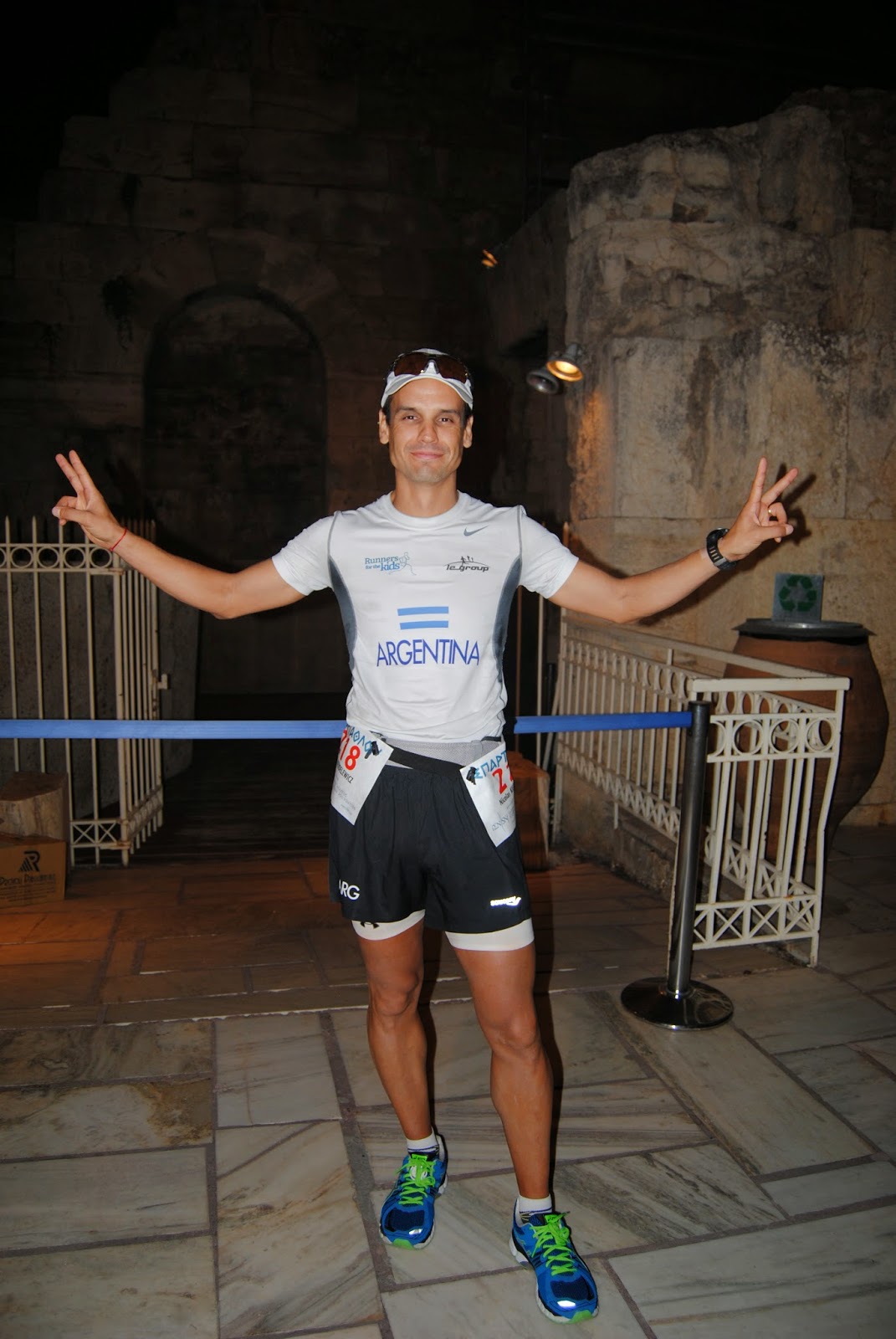 Nos despertamos el gran y esperado día 27 de septiembre a las 4 de la mañana y desayuné solo en la habitación del hotel con Patri y Cati preparando todo lo que iba a necesitar para sobrevivir durante el próximo día y medio. Me puse la ropa, que la sentía como mi amiga, llegó Nacho y salimos para la Acrópolis…a la largada del Spartathlon!