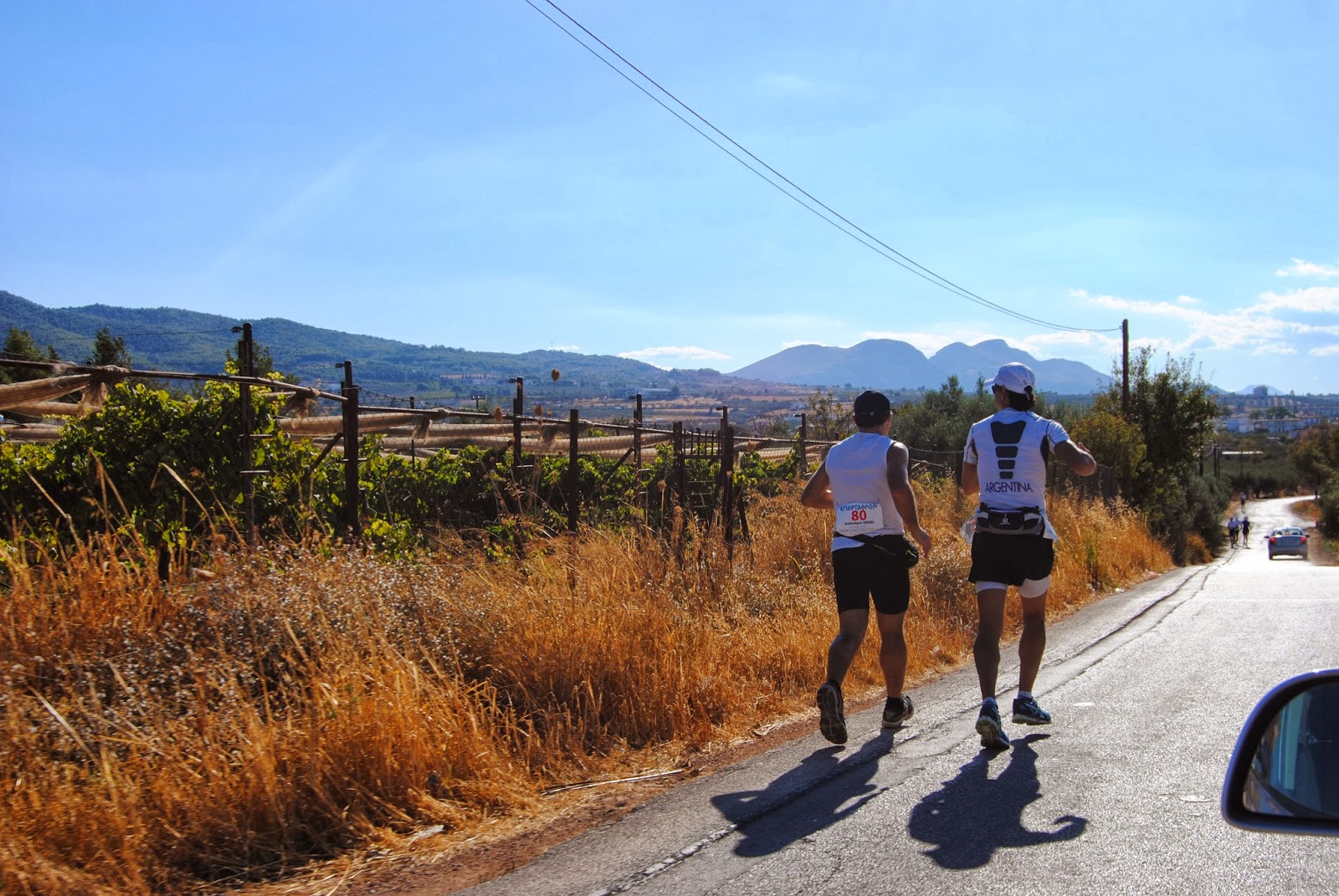 Todavía me acuerdo, allá por octubre del 2007, cuando me compré ropa para volver a trotar haciéndome la fantasía que corría el Spartathlon. Y esto mismo pensaba mientras recorría los últimos 40 kilómetros camino a Sparta y los coches tocaban bocina sacando un brazo por la ventanilla con el puño cerrado en alto en modo de saludo.